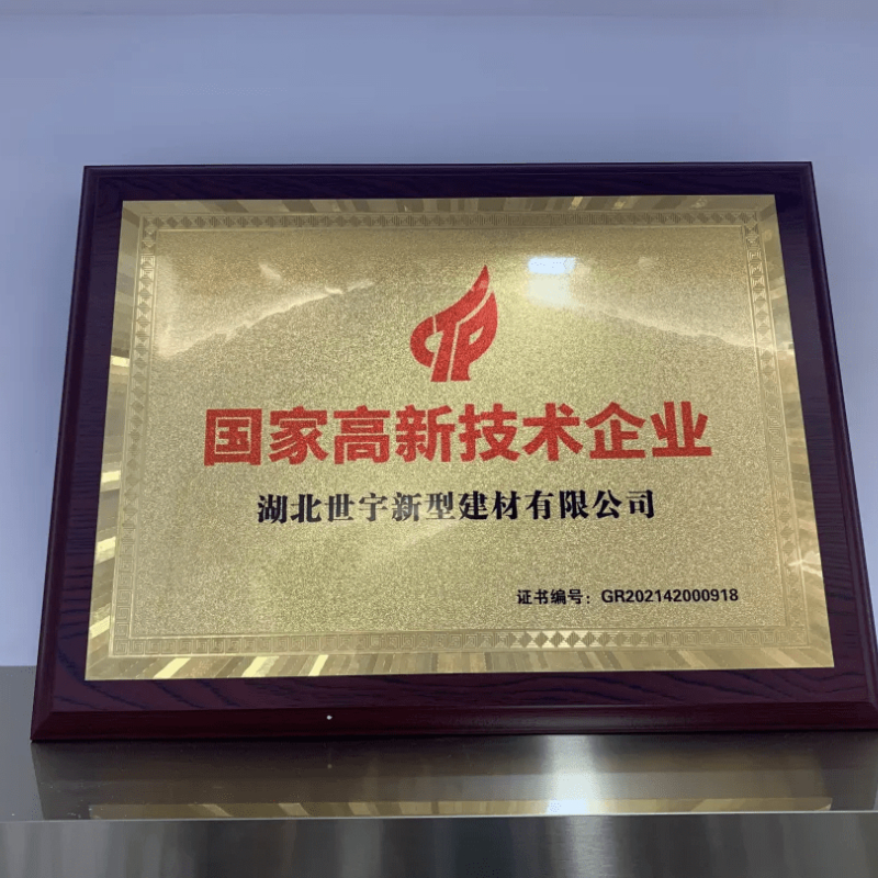2020年9月,國家工業(yè)和信息化部發(fā)布了第六批綠色制造名單,湖北世宇建材位列其中,榮膺“綠色工廠”稱號。2021年,世宇建材成功認定為國家高新技術企業(yè)。此項認證,對世宇建材促進科技創(chuàng)新發(fā)展、提升品牌形象、提高企業(yè)市場價值、提高企業(yè)資本價值等方面具有重要意義!世宇建材獲得的各項榮譽,不計其數。也收獲了一系列行業(yè)矚目的成績,這些榮譽和成績是認可,更是我們加倍前行的動力